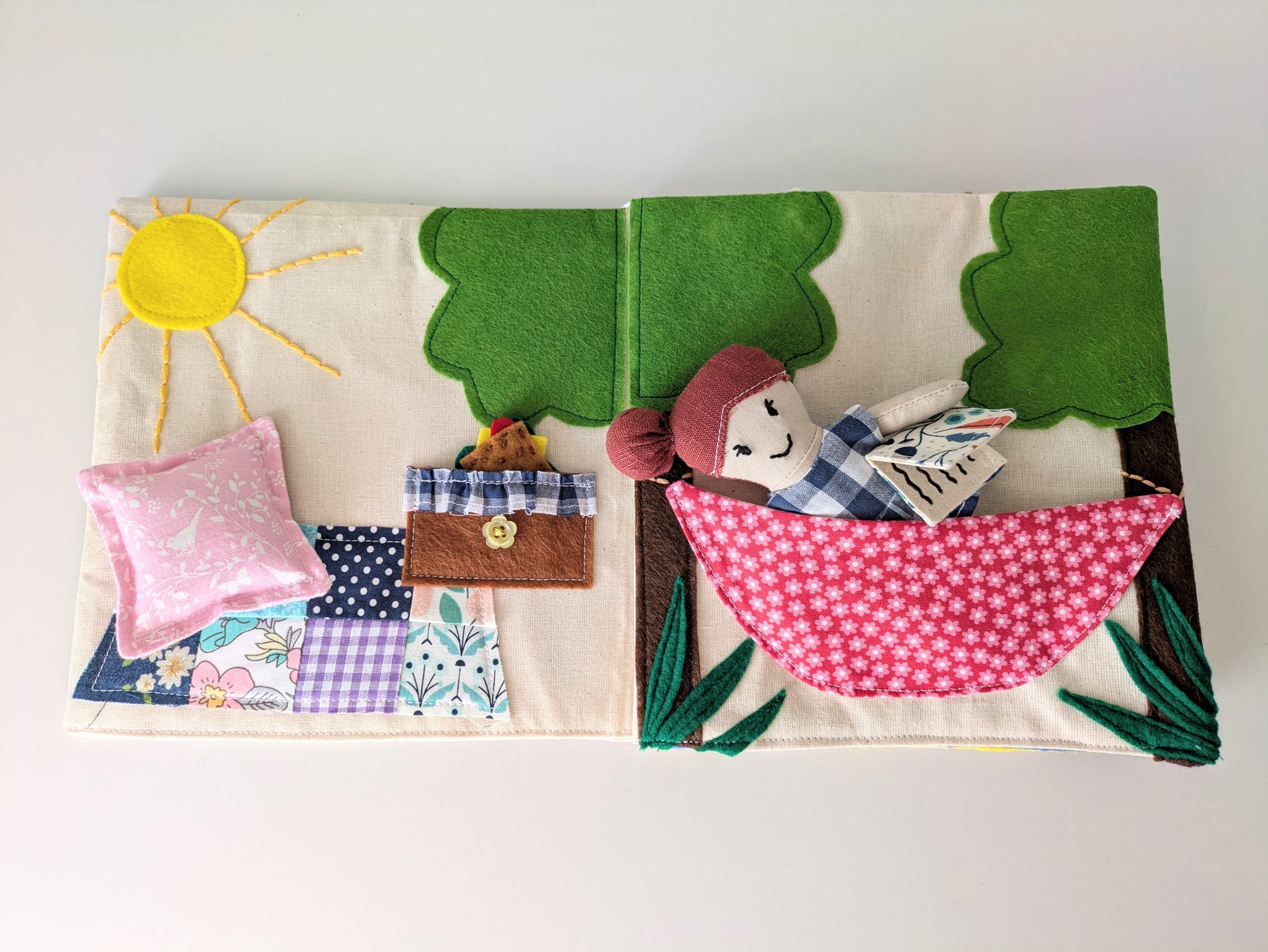 Create a magical world with The Complete Doll, Dollhouse & Adventure Book Bundle – all three beginner-friendly sewing patterns in one place. Make a 14–15cm doll, her foldable fabric dollhouse, and the seven scenes in her adventure book, for endless imaginative play.