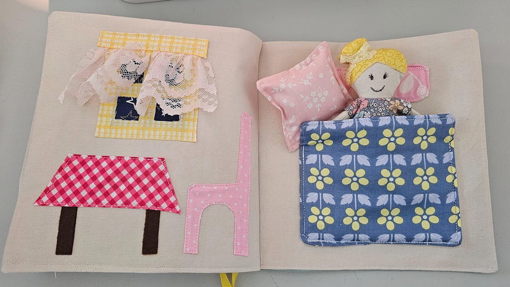 I use stiff or medium-weight iron-on interfacing to give the books structure. If you prefer a softer finish, you can use thin wadding or batting instead.