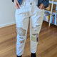 Add a splash of creativity and fun to your wardrobe with these unique white mid-rise jeans, inspired by my inner child. These jeans are a cute and stylish twist on classic denim, featuring visibly mended colourful patches of Peter Rabbit, matching tones, and a charming doily.
